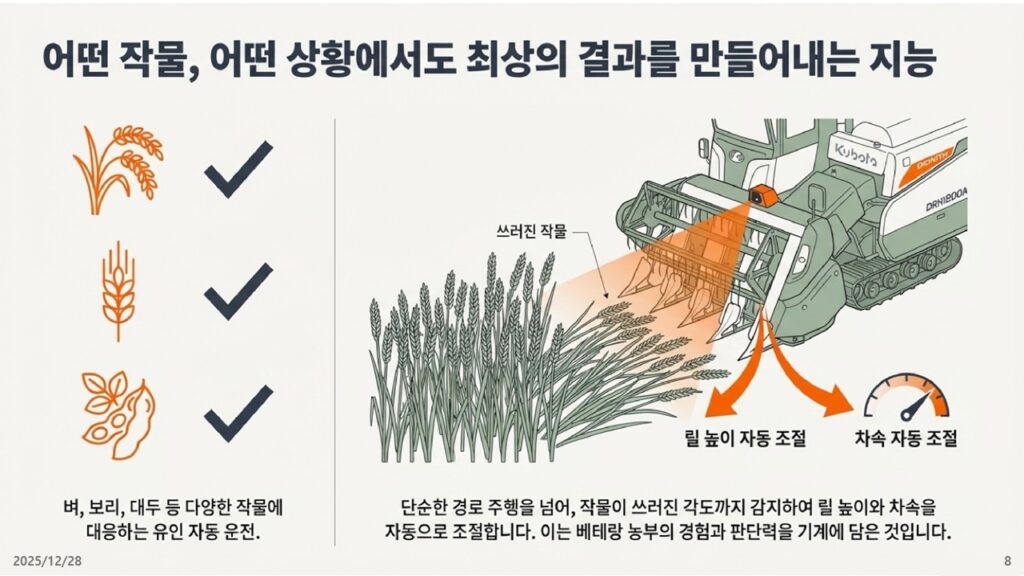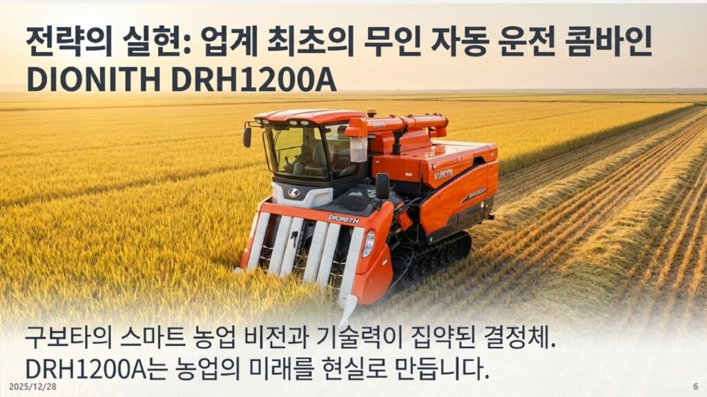 *작성자 의견 : 지능형 농업시대를 향하여 쿠보타는 “농기계가 스스로 판단하고 수확하는 시대”를 열었습니다. 한국 산업계도 하드웨어의 성능 경쟁을 넘어, 사회적 가치와 기술적 완성도를 결합한 통합 솔루션으로 미래 시장을 선점해야 할 때입니다.